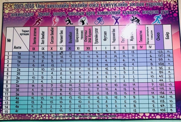 Урлаг, спортын наадмын нэгдсэн дүн гарлаа